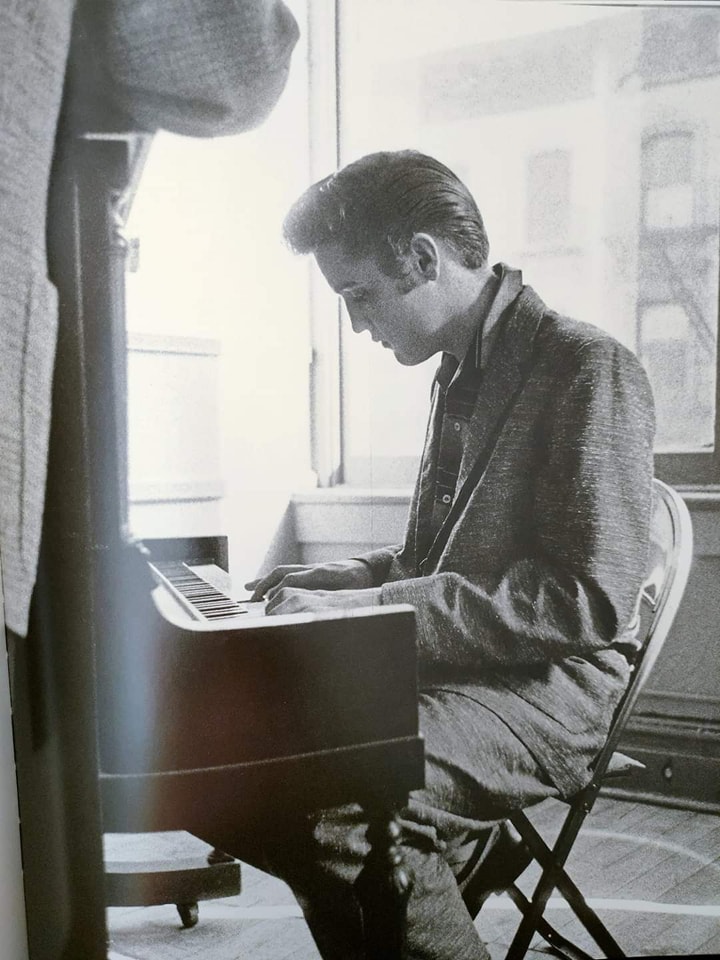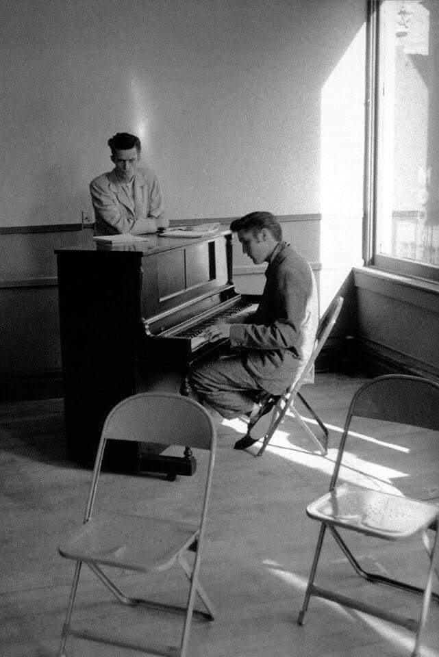 When Alfred Wertheimer arrived at the midtown Manhattan loft to photograph Elvis’s rehearsal for NBC’s The Steve Allen Show, Elvis was in a corner of the studio, deep within himself, intimately playing and singing his beloved gospel music on a beautiful upright piano.